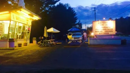 A summertime favorite in the Adirondacks serving all you favorite flavors of ice cream. We have hard and soft serve with numerous topping for sundaes. Stop by for a milk shake, hot dog, burger, fries and more.