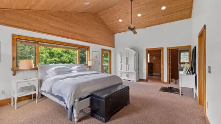 The main farmhouse, fully renovated in 2001, provides stunning mountain views, a private swimming pool, and sleeps 10 with plenty of privacy and space for a group. The house has 5 bedrooms; one king, three queens, and two twin beds (cribs available). There are 3 bathrooms. Enjoy a fully equipped kitchen for family meals, and set up a farm tour during your stay.