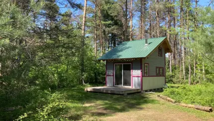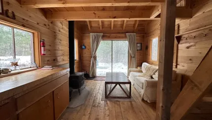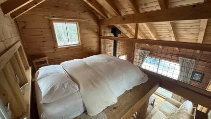 The Shepherd's Crook is a tiny house nestled back in the pines. The Crook is just 200 square feet plus an 8'x8' sleeping loft with a steep ladder. There is no electricity or running water. Lots of windows and a big sliding front door let in lots of light during the day. A composting outhouse is 30' out the back door. There's a small two-burner propane stove on the counter in the small kitchen space with the basics to cook/eat for two. A potable water hydrant is located by the barn. Self-sufficiency is a must for this unique stay. Be prepared for a rustic and adventurous experience. You will find a few basics, like mugs, plates/bowls, silverware.