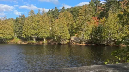 The dam at Franklin Falls created this lake along the Saranac River, so the shore is a bit different than a glacier-dug lake. The state launch can be used for motor boats, but Franklin Falls is shallow enough that only small boats should be launched. The launch is unpaved and somewhat rough, and boaters should take care since the reservoir is generally shallow with rocks and stumps lurking just under the surface in many spots.
