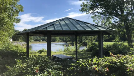 This park has a pavilion, benches, shady area, short walking path, and fishing access.