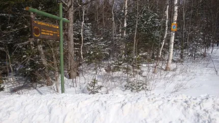 The Cooper Kiln Spur Snowmobile Trail is 2.7 miles to the pond and lean-to. The rest of Cooper Kiln Trail is non-motorized for 3.2 miles to Bonnieview Rd.