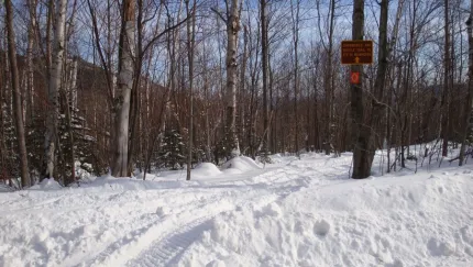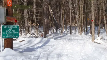 From the Forestdale Rd turn left (west) and ride for 0.2 miles west to the Catamount Mountain Trailhead. Follow the Catamount Trail until the snowmobile trail branches of to the left approximately 0.5 miles the trailhead. From here the snowmobile trail travels across private property (stay on trail and respect all private property) to eventually connect with the Taylor Pond Snowmobile Trail. The Taylor Pond Snowmobile Trail is on state land. It connects with other trails in Clinton County.