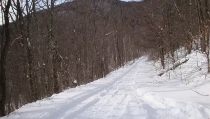 The Cooper Kiln Spur trail snowmobile section is 2.7 miles to the pond and lean-to. The rest of the Cooper Kiln Trail is non-motorized for 3.2 miles to Bonnieview Rd.