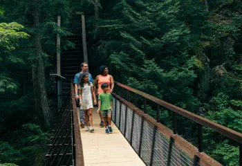 The gondola ends tt the top of Little Whiteface, where there is a beautiful viewing deck that looks over to Lake Placid and across the High Peaks. There are picnic tables, so take a load off and enjoy the scenery for as long as you would like. There is also a short hike you can take from here, so look for the trailhead for even more views and adventure. The gondola takes you back down to the base lodge when you are ready, so you can continue to enjoy the views all the way down.