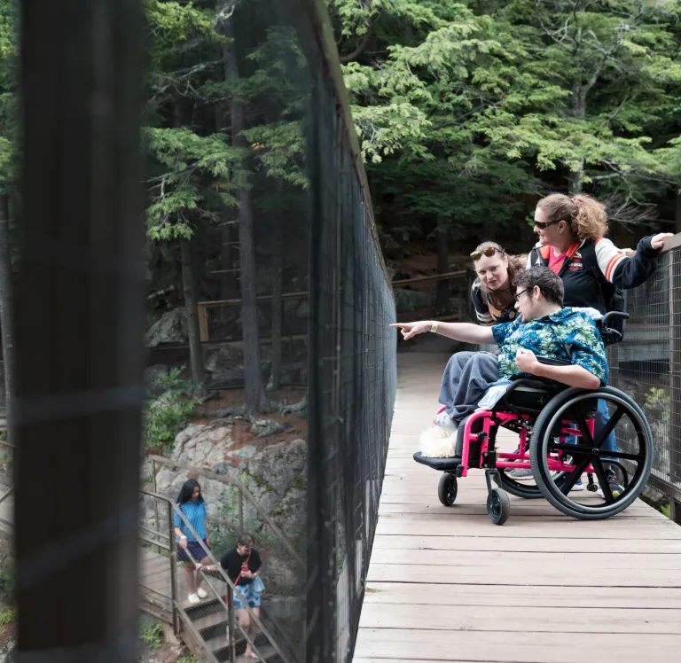 It’s not all presents and reindeer here, though. At High Falls Gorge everyone can experience the raw power and beauty of the Ausable River. A series of waterfalls cascades down the gorge, ending with the amazing Rainbow Falls. While the entire trail and boardwalk system is not wheelchair accessible, portions of it are, affording all visitors amazing views and accessible lookouts.