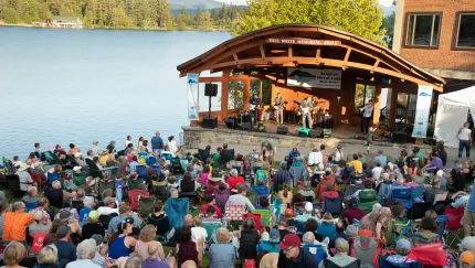 Songs at Mirror Lake (SAML) is a free summer concert series, held Tuesday evenings at Mid’s Park Bandshell in downtown Lake Placid. We are an all-volunteer, nonprofit community organization whose mission is to introduce residents and visitors to a diverse range of musical offerings and to provide regional artists with a platform for exposure and experience. SAML is made possible by a generous grant from the New York State Council on the Arts Decentralization Program, with the support of the New York State Legislature, and administered by the Adirondack Lakes Center for the Arts.