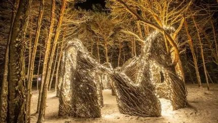 - Stickwork: Patrick Dougherty’s “Hopscotch” glows and provides an opportunity for your imagination to run wild.