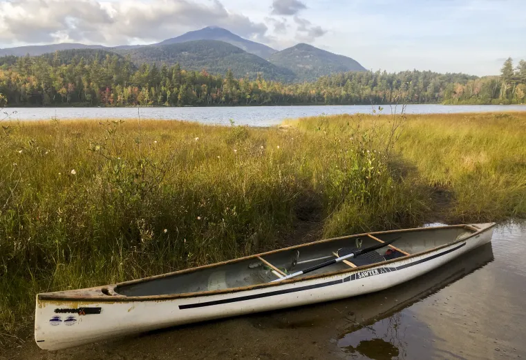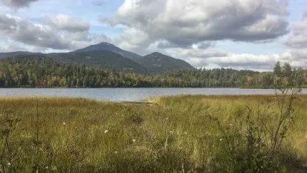 A portage trail leads to the shore of the pond, where there is an amazing vista across the water that includes Whiteface Mountain. Be careful, this area is surrounded by private land, stay on the trail.
