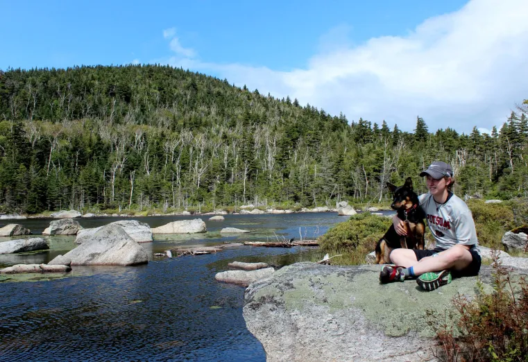 From the secondary trailhead, this is a 3.2 mile hike one way. Starting from Bonnieview Road in Wilmington the trail begins on a rather flat course along an old road. After crossing a brook the trail begins to climb then stays fairly steady but not too steep. At a height-of-land on a sharp corner you will notice the trail goes sharp left and a faint path goes straight. (Straight leads to a bushwhack to the Wilmington Slide on Wilmington Mountain. Please, only advanced hikers should attempt this.) Continue to stay on the marked trail heading left. The trail moderates a bit before entering a well-rutted and washed out trail that climbs steeply through an open hardwood forest. As the trail flattens out you will come to the lean-to at the pond. The trail continues past the lean-to and along the western shore of the pond and becomes the primary trail above.