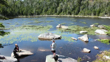 Secondary trailhead: From the main intersection in Wilmington, where Route 86 meets The Whiteface Memorial Highway, follow Bonnieview Road. Continue here for 3.2 miles to the state trailhead on the left for Cooper Kiln Pond.