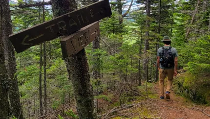 - Hike includes trail junctions and a road walk