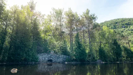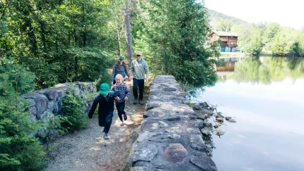This delightful, short walking path circles Lake Stevens, named for Olympic bobsledder Hubert Stevens. The lake is stocked with trout, the trees represent all 34 species native to the Adirondacks, and there's a picnic table and two little bridges, one of them made of stone.
