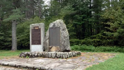 Monument Falls is a wide and short waterfall that you can see right from the road! There is also a path to and along the Ausable River that is suitable for small children and families. The Monuments commemorate the 50th and 100th anniversary of the establishment of the Adirondack Park.