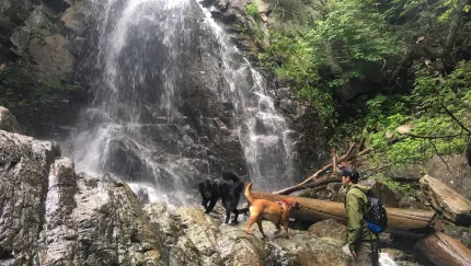 The hike will start on an uphill and continue to climb to its end. The largest of the falls is not too far along the trail and can be enjoyed from the base or from a bit higher as you continue along the trail. The trail continues along the left of the brook as it makes it way higher along the cascade. Other small waterfalls and swimming holes are met along the way.