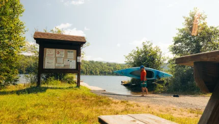 The boat launch is located just past the campground entrance booth and provides the only public access to Taylor Pond. Motorboats, rowboats, canoes, and kayaks allowed. Rowboat and canoe rentals available when the campground is open.