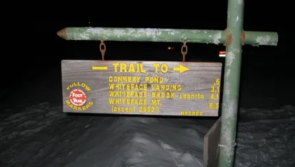 From the four-way intersection in Wilmington, travel east on Route 86 toward Lake Placid. Drive for just about 10-miles to a large parking lot at a bridge over the Ausable River. From here, you can access Connery Pond and Whiteface Landing. Just up the road from the parking lot, there is a dirt road that leads back to the trailhead for Whiteface Landing. There are few spots, so parking on Route 86 might be the best option. The trailhead is less than one-mile down the dirt road. In winter you will need to park at the large lot along the road.