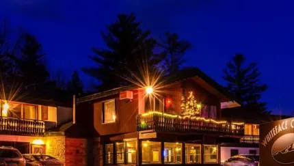 Located at the base of Whiteface Memorial Highway, guests can enjoy views of the Whiteface Mountain Range from their rooms and are steps away from the AuSable River and the town beach located on Lake Everest. Hiking, biking, fishing, and Whiteface Mountain are mere minutes from your stay. Adirondack Chocolates is next door and a popular restaurant - Twisted Raven- is on property.