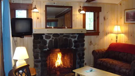 Cozy 1, 2 and 3-bedroom cottages featuring fireplaces, kitchens and refrigerators. Restaurant features steaks, seafood, salad bar, child's menu, bar menu and nightly specials. One mile to Whiteface Mountain, 10 miles to Lake Placid.