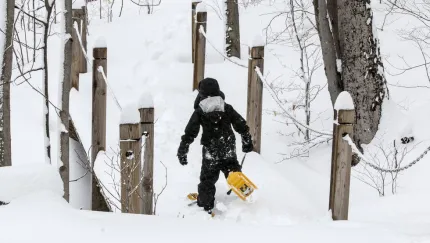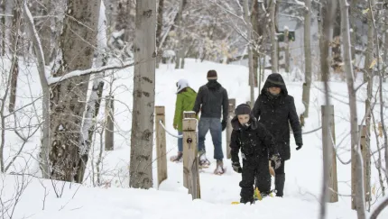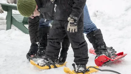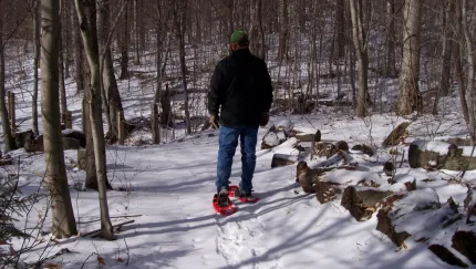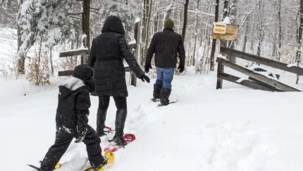 The 1-mile long Nature Trail turns into a snowshoe path in the winter. You pass by steep cliffs, footbridges, and boulders along the way. Mountain Safety Research Snowshoes (MSR) are available for rent and may be taken off premise for a daily rate.