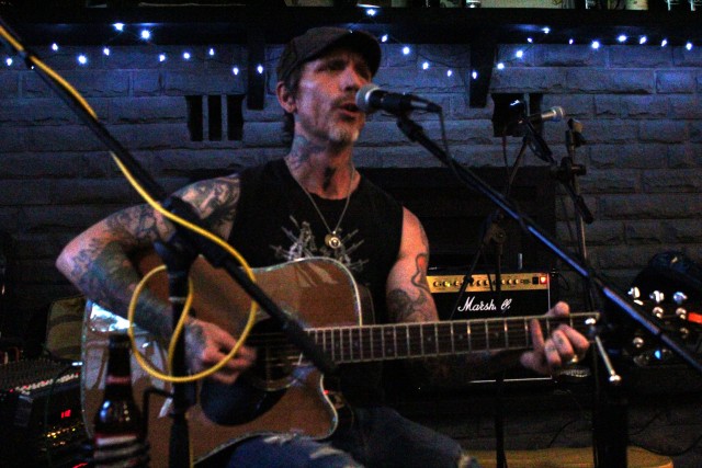 I don't get nervous about playing in front of people, I get nervous about playing to an empty bar. Fortunately, that didn't happen. As Tim launched into his set of hillybilly punk songs, people trickled in. The place slowly filled up, and people were responding favorably to his upbeat, boot-stomping, raspy-voiced tunes. That's why we love playing with Tim — he's professional, his setup is simple (just guitar and a mic), and it's hard not to like his music.