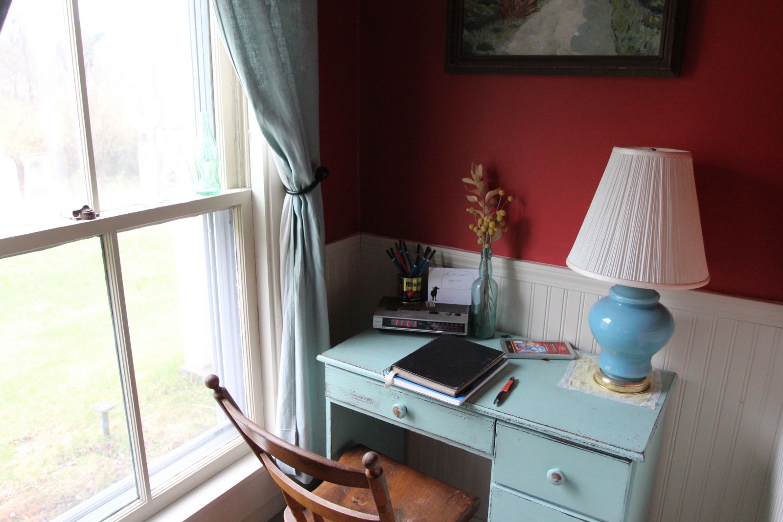 The second overnight option at Sugar House is the Guest Quarters, a self-contained space on the back of one of the farmhouses. Although slightly smaller, the Guest Quarters have the same cozy charm as the Carriage House, with art, antiques, books (some of them about cheese!), and Sugar House's trademark details, including a record player and art supplies. A note on the desk, near the colored pencils and watercolors, says, "Leave us a note or draw a picture!"