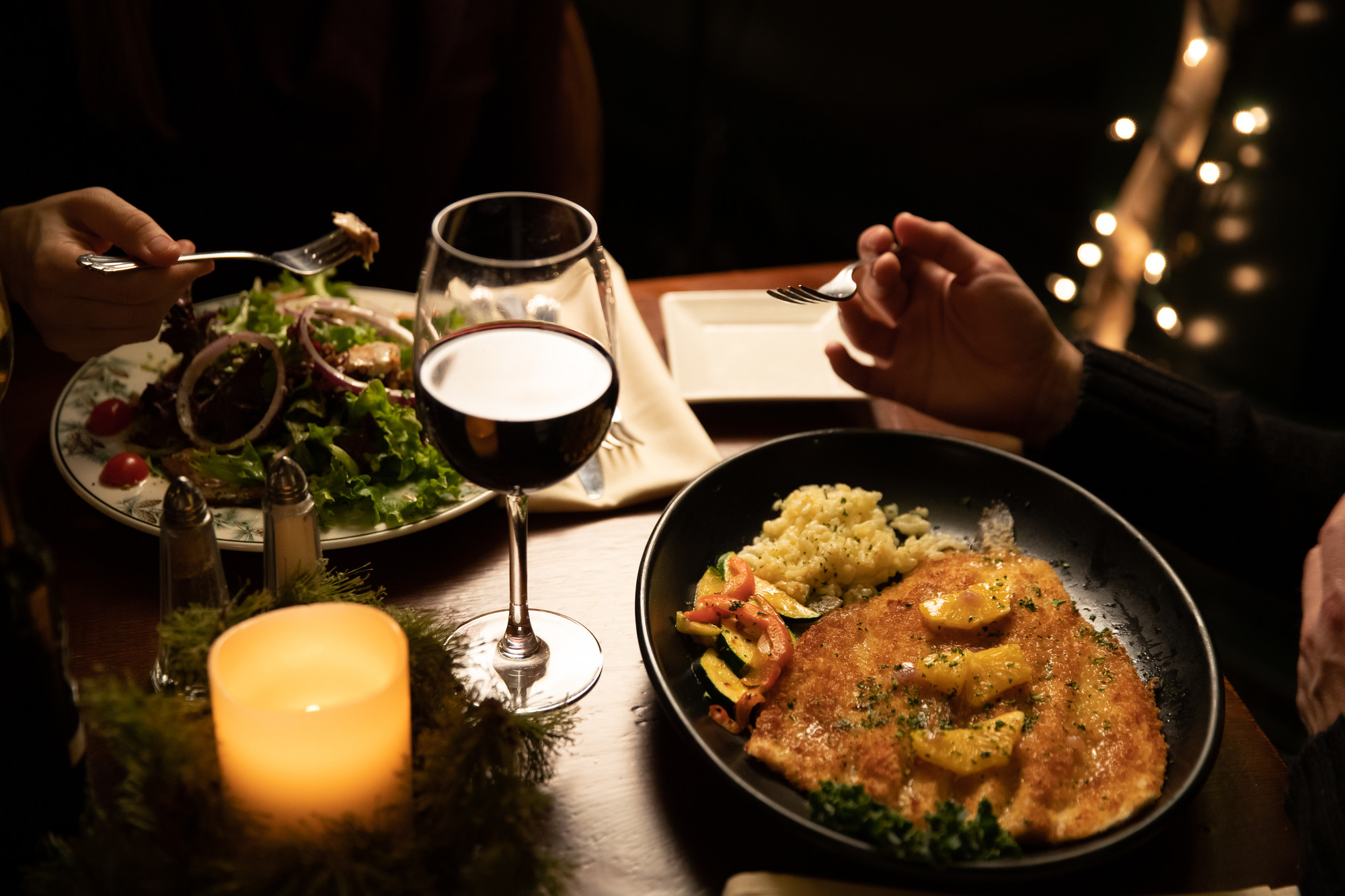 For a cozy, classically Adirondack spot to dine, head to the Wilderness Inn in Wilmington. The restaurant might be small, but the menu is hearty and the atmosphere has plenty of vintage charm. Tiny white Christmas lights twine around oak posts and across the ceiling, while the fireplace adds something special. Hearty entrees are comforting, delicious, and remind you of going out to dinner when you were a kid. In fact, the Wilderness Inn has been welcoming locals and visitors for decades. Low ceilings give a warm comfort to the space. Saturday nights are for prime rib. The stuffed pork chop is tender and filled with fragrant stuffing.