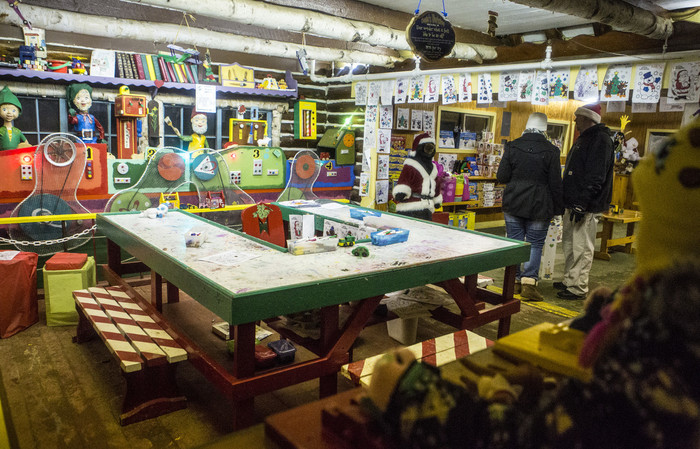 The shops at Santa’s Workshop are some of my favorite. There is a great toy store complete with a slide that could keep the kids busy all day. There are little wooden toy elves busy building dolls and teddy bears. This toy store is not like anything you will see in a suburban mall. Santa’s elves are working, creating, and coloring. They will sit down with the kids, or adults, to color a picture or help you make your wish list for Santa.